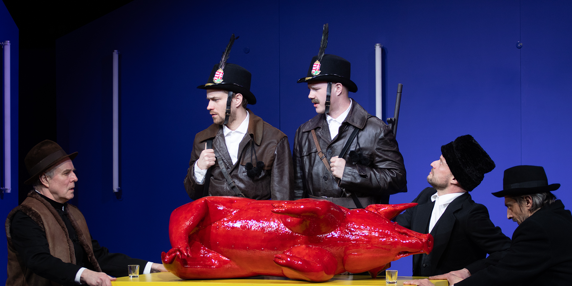 „Bár (annak ellenére, hogy Alföldi Róbert rendezéseire korántsem ez a jellemző) a több mint két órás előadás alatt egyetlen konkrét utalás sincs a jelenlegi belpolitikai helyzetre, az a megdöbbentő és végtelenül fájdalmas, hogy demokrataként mégis végig érezzük az áthallást; és a friss hírekből ki tudnánk keresni a szemforgató, ronda tanítót (Nagypál Gábor), aki aljas bosszút áll, mert nem adták hozzá a nála sokkal fiatalabb („de hiszen sánta!”) lányt, a folyton Isten jóságáért hálát adó, de otthon a feleségét terrorizáló unitárius lelkészt (Chován Gábor), a pozícióját féltő, ezért a feletteseitől rettegő és hajbókolásban jeles falubírót (Mertz Tibor), no meg a lány iránti érzelmei és a cölibátus miatt folyton önmarcangoló, amúgy „jóember” plébánost (Sas Zoltán). Végül is ő az, aki még akkor is próbálkozik megmenti a falu zsidó vagy nem is zsidó lakóit, amikor már elhurcolták őket a gettóba.” (Eller Erzsébet, Budaörsi Napló)