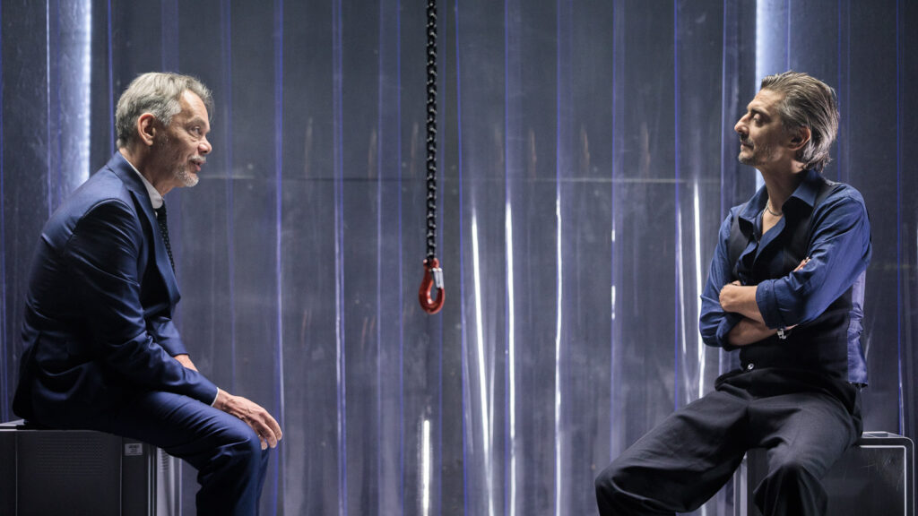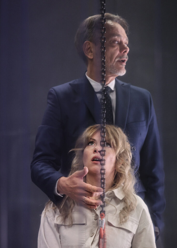 Két királynő. I. (Tudor) Erzsébet az angol trónon, Stuart Mária skót királynő az ő fogságában. Sorstársak, rokonok, ellenségek. Ketten vannak, de se az angol trónon, se a férfiak szívében nincs helye, csak egynek. A börtön szűk, a vád hamis, az ítélet halálos. A rang kötelez, a nép követel, az érdekek kényszerítenek. Az egyiknek halnia, a másiknak ölnie kell. Minden eldőlt már, de még minden megfordulhat: ez az utolsó előtti pillanat. Egy férfiak által kitalált világban, ahol a politikai érvényesülés kíméletlen mészárszék-logikája uralkodik minden felett, két nő áll szemben egymással – és képükben a szabadság fordul szembe az önkénnyel. De lehet-e esélye előbbinek az utóbbi felett? Két királynő a két térfélen. Az egyikük beletörik, a másikuk hozzátöri magát a rendszerhez.