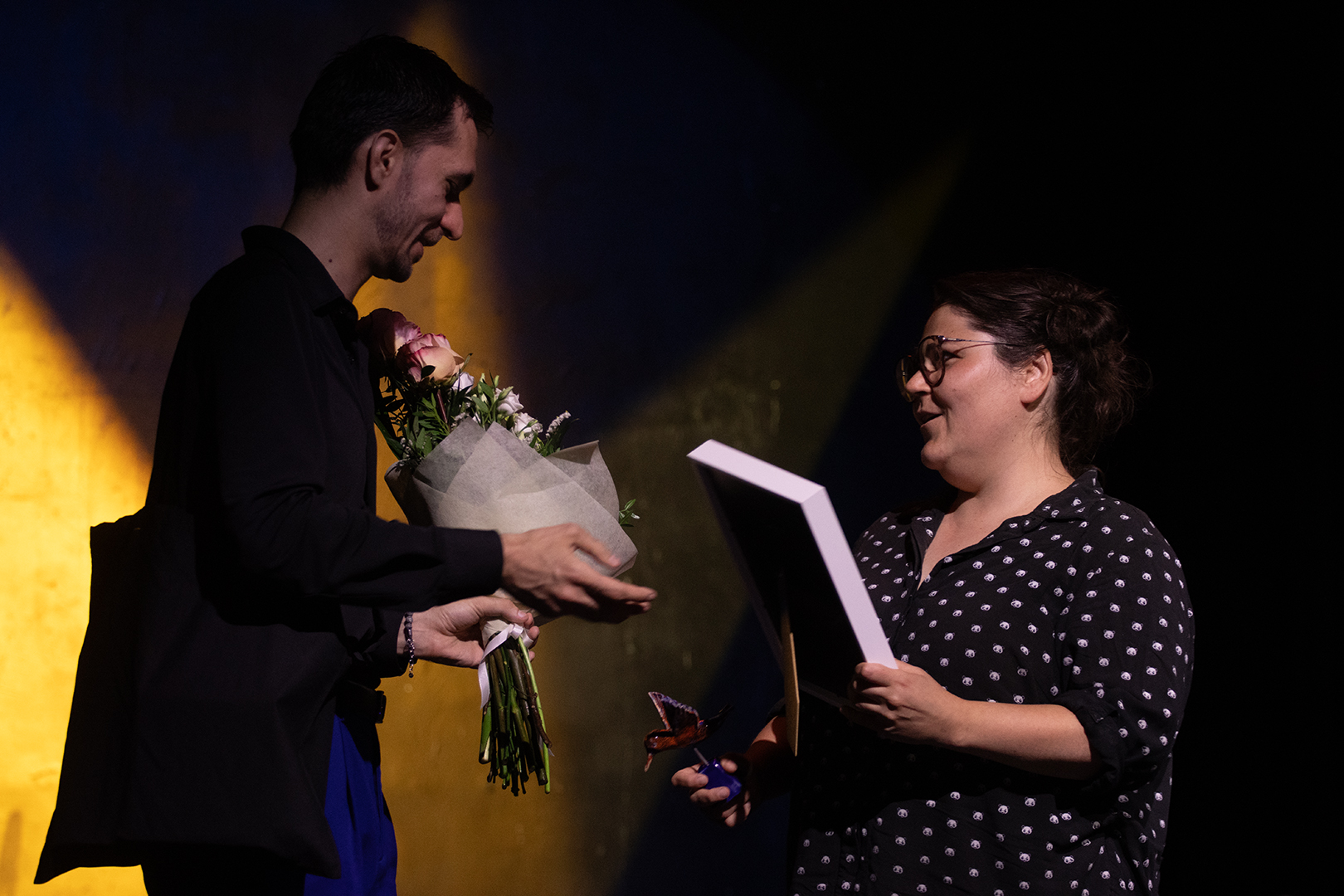 A harmadik díj „A repülés boldogsága” nevet viseli Németh Nikolett dramaturg ötlete nyomán, és az évad színészi teljesítményéért osztották ki, a színtársulat tagjai titkos szavazással döntöttek a díjazottról. Első alkalommal Böröndi Bence vehette át az elismerést, méghozzá Szekeres Vanda rendezőasszisztenstől.